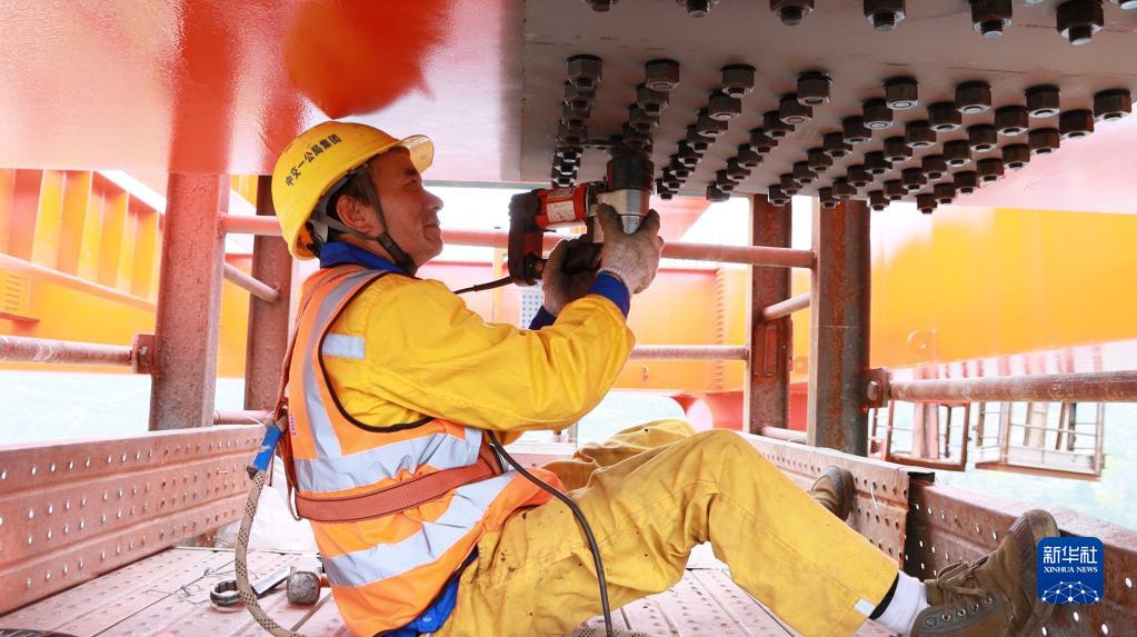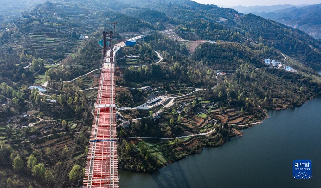 3月30日,中交一公局工人在德余高速乌江特大桥施工现场作业。新华社发