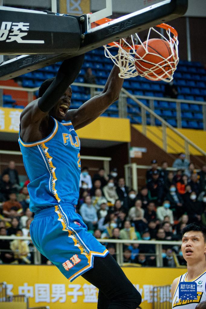 3月30日,福建浔兴股份队球员梅克在比赛中扣篮。新华社记者 江汉 摄