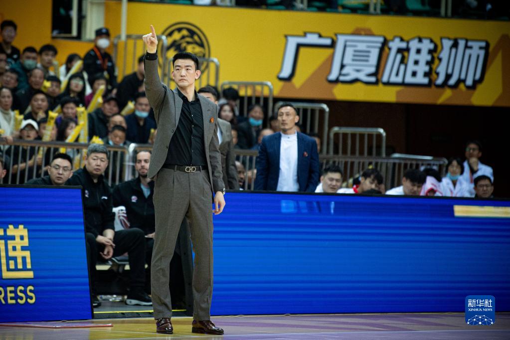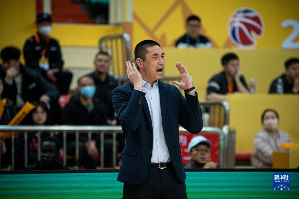 3月30日,浙江东阳光队主教练王博在比赛中指挥。新华社记者 江汉 摄