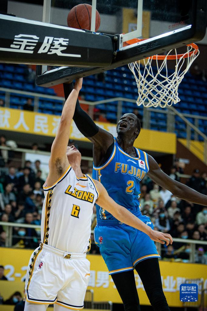 3月30日,福建浔兴股份队球员亚当斯(右二)在比赛中上篮。新华社记者 江汉 摄