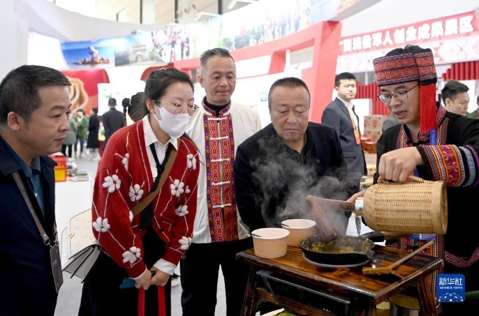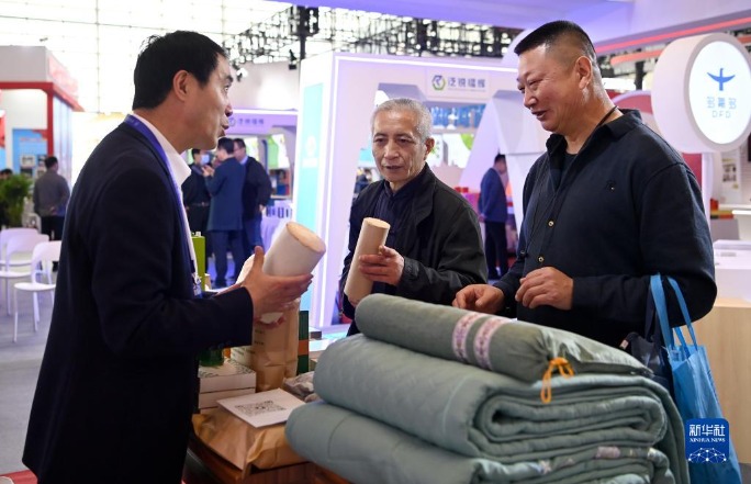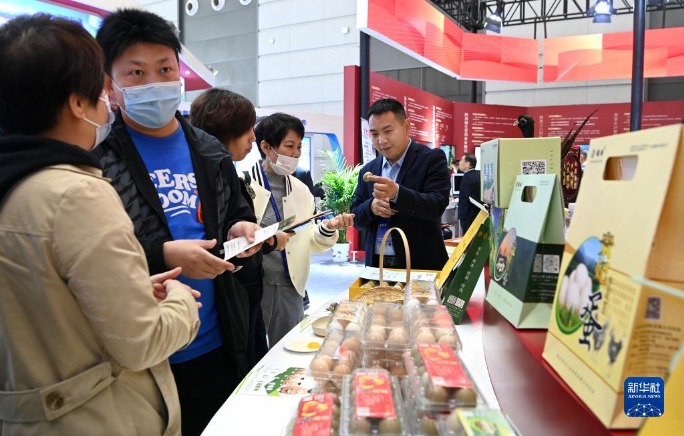 3月30日,首届全国退役军人创业创新成果展交会现场,参观者在展会上参观。