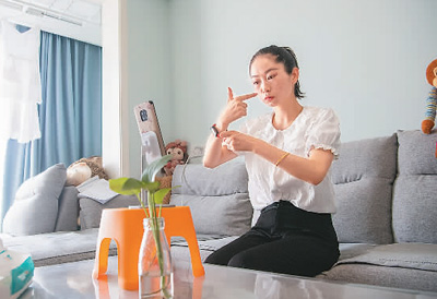90后听障女孩谭婷通过直播平台为听障人士解答法律问题。新华社记者 唐奕摄