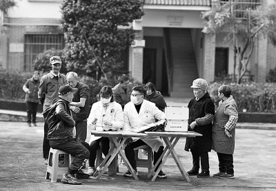 在贵州省赤水市长沙镇笃睦村,医护人员为村民进行健康检查。新华社发