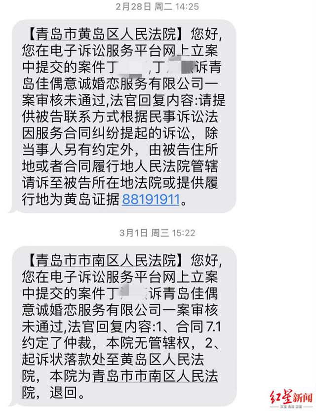 小丁只好通过微信的掌上法院提起诉讼。第一次,她向自己所在地区的法院提起诉讼,由于与合同约定地点不同,法院以“需到被告住所地或者合同履行地人民法院管辖”为由,驳回了小丁的申请。第二次,小丁向该婚介公司所在的法院提起诉讼,因合同已约定了仲裁,法院无管辖权作罢。小丁提供的合同第七条显示,如双方就本协议内容或其执行发生任何争议,协商不成时,任何一方均可向乙方所在地仲裁委提起仲裁。