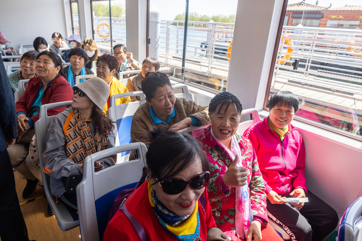 试运营期间,雄安市民登船感受“水上巴士”。北京公交集团专门为白洋淀打造了国内首艘以液化石油气为动力的铝合金画舫船,相较于传统燃油船舶,运营成本节省50%以上,温室气体减排50%以上,有害颗粒排放物降低95%以上。