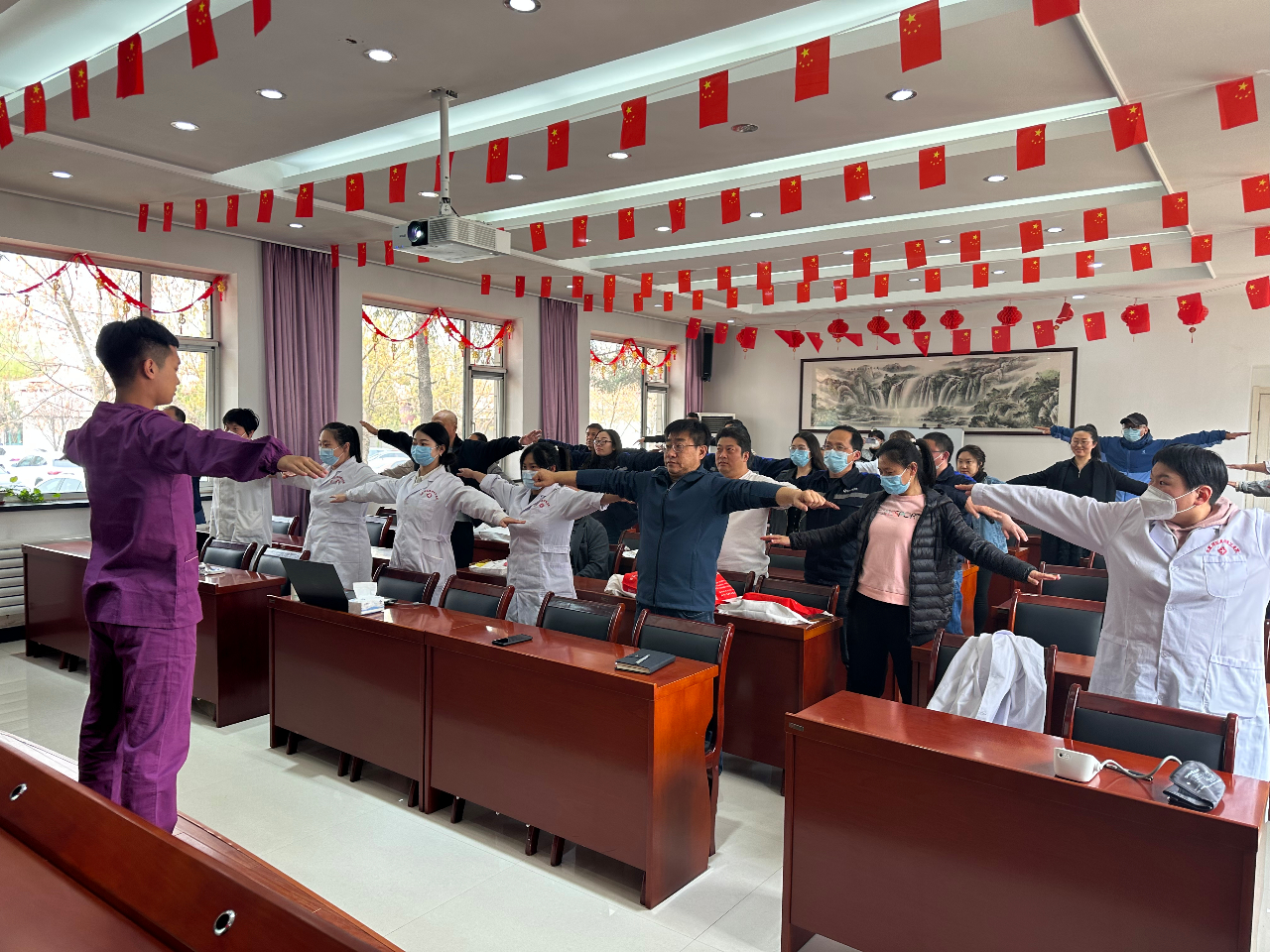 活动中,北戴河区戴河镇卫生院院长周胜男首先为职工们讲授了中医保健知识,还现场教授一套保健操,40多名职工一起跟学,调动起大家的参与积极性。