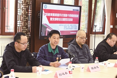开学典礼后,该学院职工匠师、全国劳模吴喜军和职工匠师、北京市劳模王建生分别以《艰苦奋斗勇于创新——让人生不负韶华》《从服务到享受——做到双赢》为题,为全体新生开展劳模精神、劳动精神、工匠精神劳模讲座特色思政实践教学活动。随后,围绕“大劳模班”班级建设主题以及“守初心、用匠心、共筑技能人才圆梦——我与职工匠师共成长”党日活动主题,该学院职工教育与匠师发展中心党支部和继教部(招办)教务处党支部全体党员与劳模工匠们开展了深入座谈,支部党员和职工匠师分别与劳模学员实现结对。