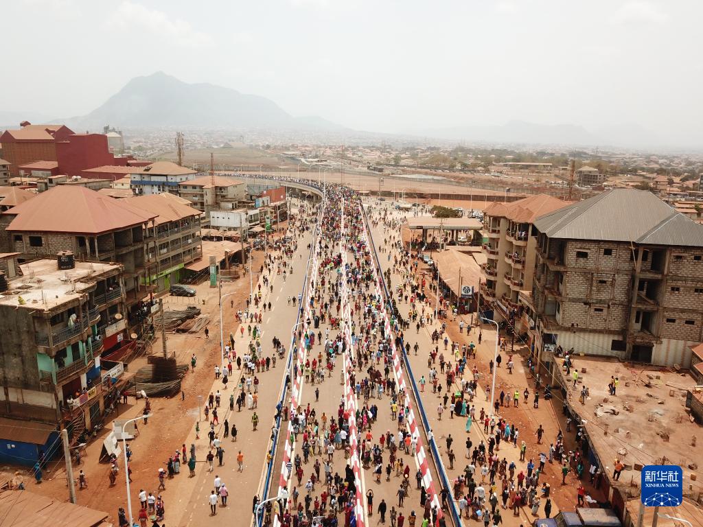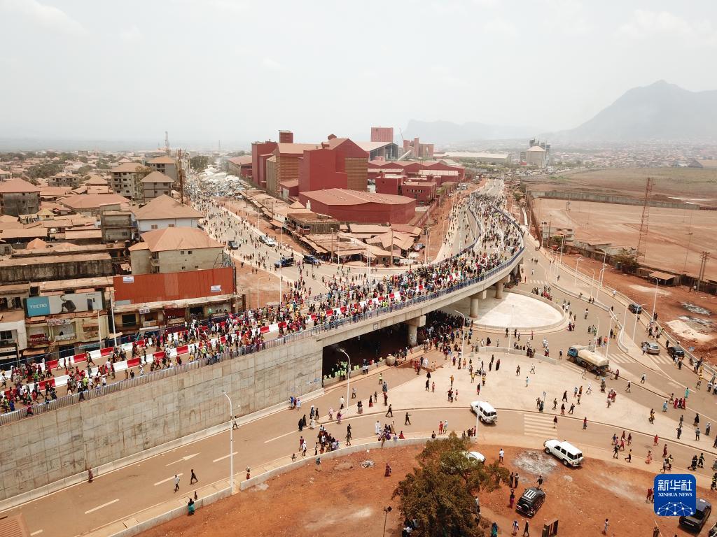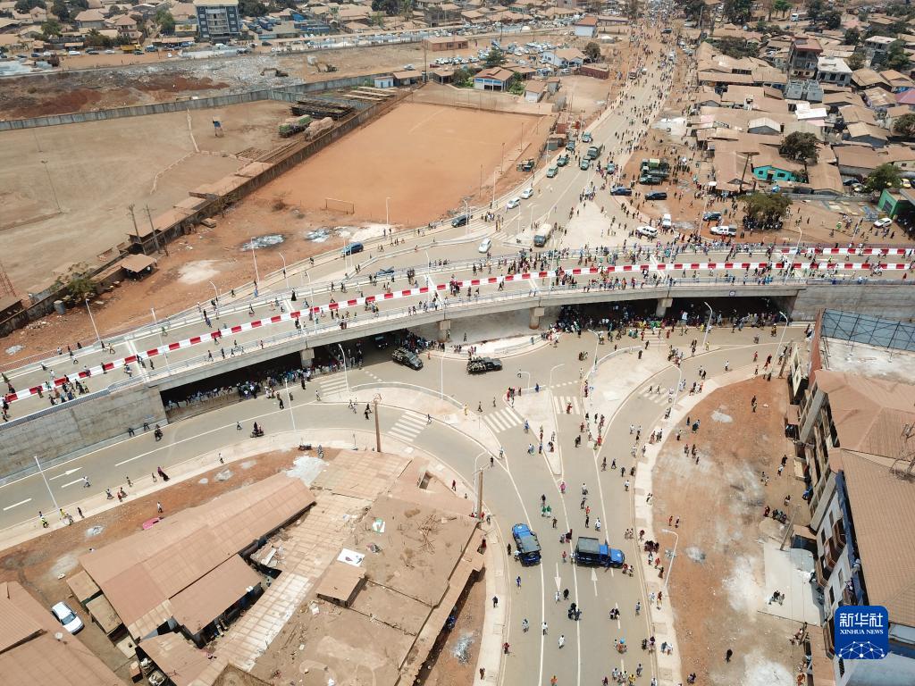 由中国企业承建的几内亚科纳克里卡格贝伦立交桥18日竣工通车。