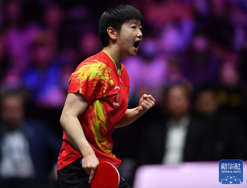 孙颖莎在比赛中庆祝得分。新华社记者 李嘉南摄