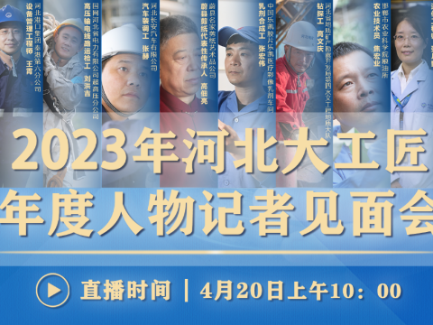 直播回顾丨2023年河北大工匠年度人物记者见面会(一) 为大力弘扬“执着专注、精益求精、一丝不苟、追求卓越”的工匠精神,引导广大职工学习“工匠精神”,践行“工匠精神”,在建设中国式现代化河北场景中更好发挥主力军作用,推动河北省高质量发展贡献智慧和力量,河北省政府新闻办于4月20日10:00举行2023年河北大工匠年度人物记者见面会。中工网首页、微博同步直播。
