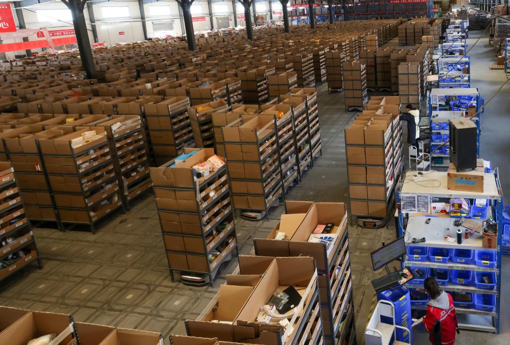 京东集团拉萨仓库一角的忙碌场景(3月7日摄)。新华社记者姜帆 摄