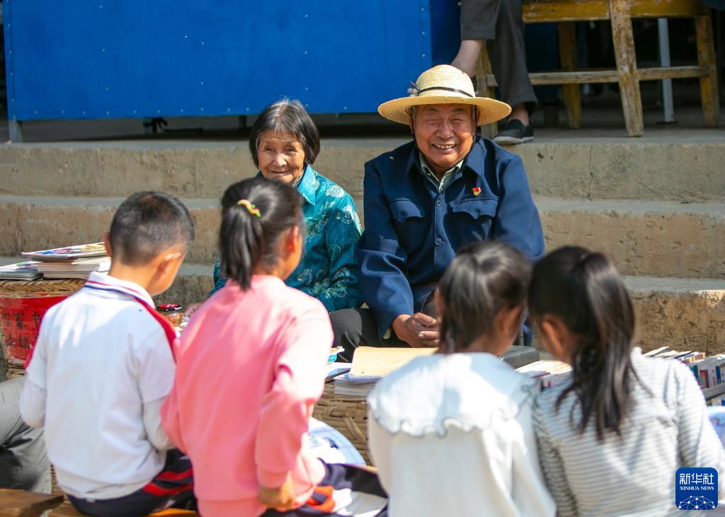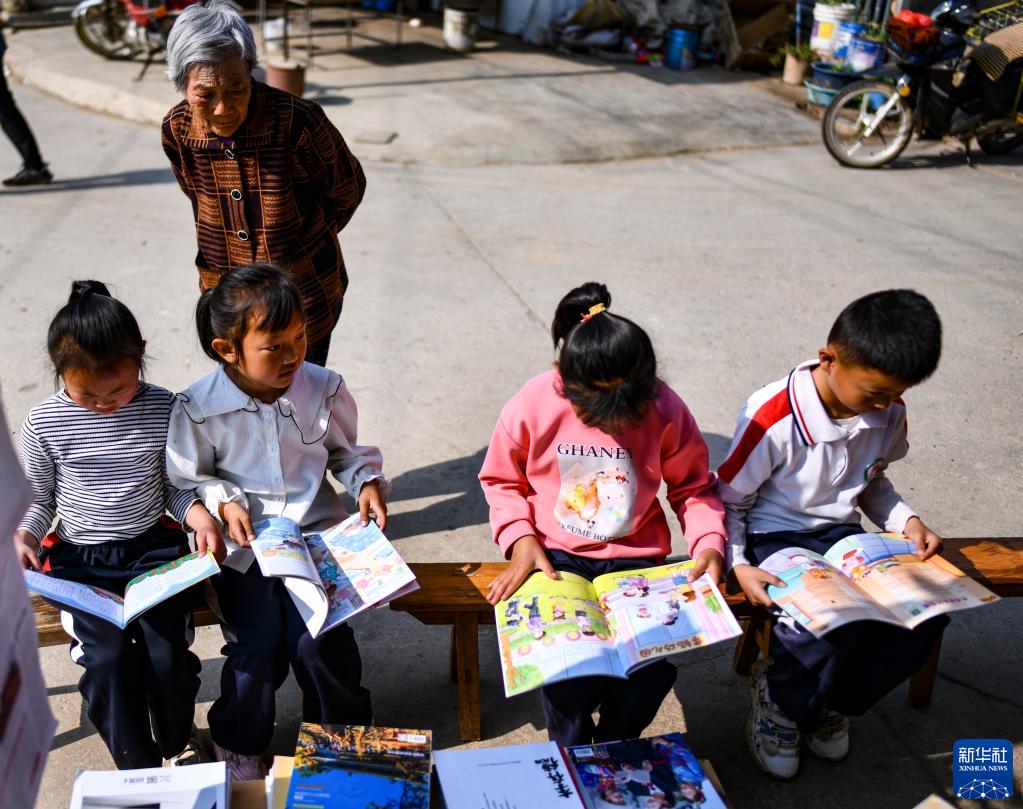 4月19日,村民在红星村的爱心流动书摊阅读。新华社记者 江文耀 摄