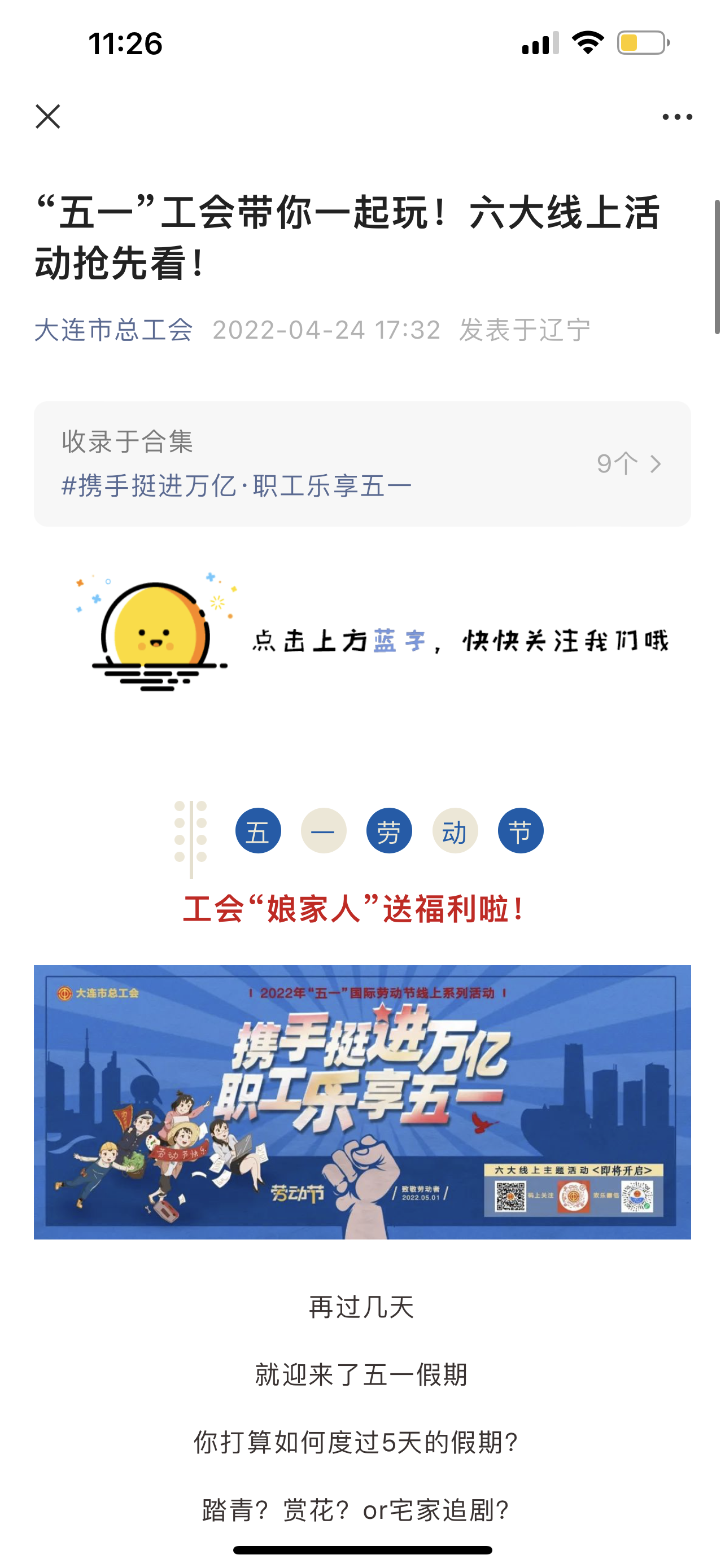 “携手挺进万亿 职工乐享五一”五一线上系列活动