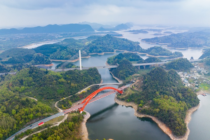 红枫湖湿地公园及饮用水源保护区。为了能够在修桥的同时保护好生态,贵州首创山区复杂条件下拱桥原位拆除重建技术,经过2年的修葺,最终花鱼洞大桥于2021年成功恢复通车。花鱼洞大桥凭借超高的修建技术,成为了山区峡谷桥梁“小而精”的代表作。