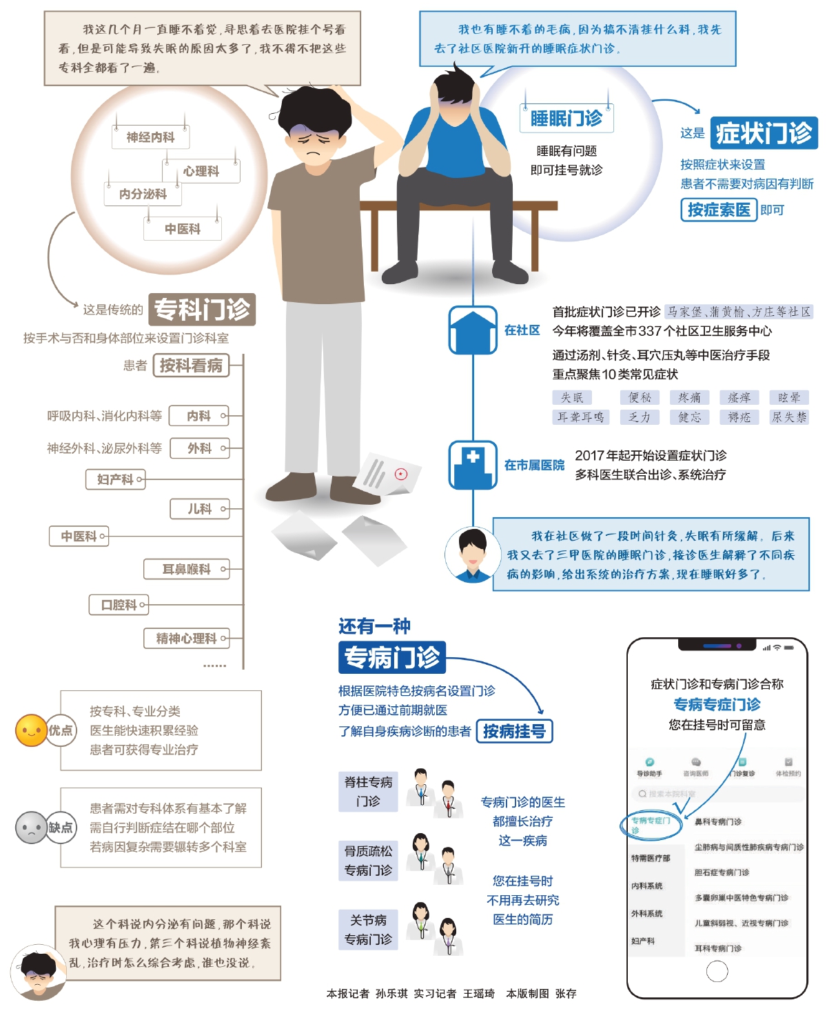 失眠、肥胖、便秘、疲劳……被这些症状困扰,就医时却拿不准该去哪个科室求医问诊?北京已在社区医院铺开“症状门诊”,进一步解决这一难题。症状门诊,顾名思义,患者可按症状挂号就医。它与传统的专科门诊、新兴的专病门诊有何区别?重点关注哪些症状?