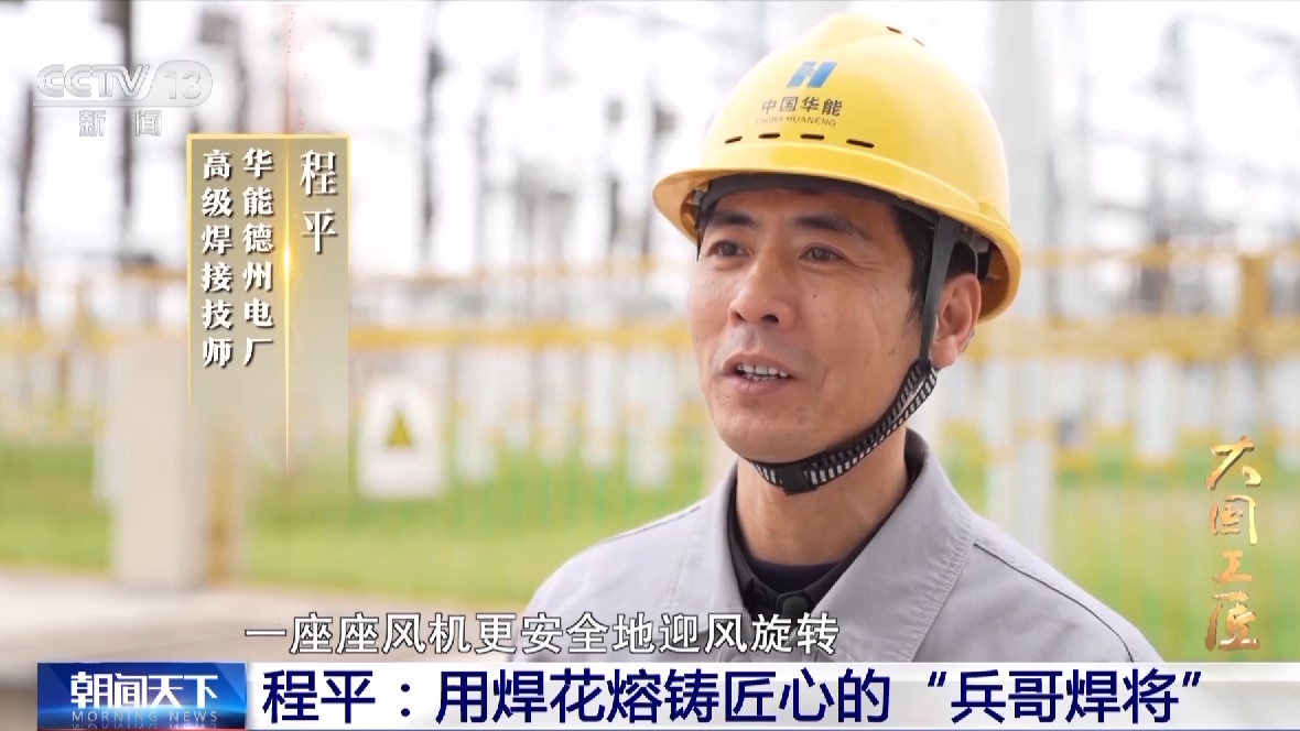 华能德州电厂高级焊接技师 程平:这十来年,新能源迎来了大的发展,每次看到经过我的手,一座座风机更安全地迎风旋转,能够参与新能源的建设,为国家出一份力,见证它的发展进程,我感到自己非常骄傲也很自豪。