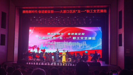 在“五一”国际劳动节即将到来之际,重庆大渡口区总工会、区创建全国文明城区指挥部办公室、区文化和旅游发展委联合举办大渡口区“拥抱新时代 奋进新征程”庆“五一”职工文艺演出。该区各街镇、园区总工会,工会联合会、系统工会、区直属工会、企业工会组成的10支队伍联袂为现场职工群众献上一场“文艺大餐”的同时,也展示劳动者昂扬奋发的精神风貌和时代风采。