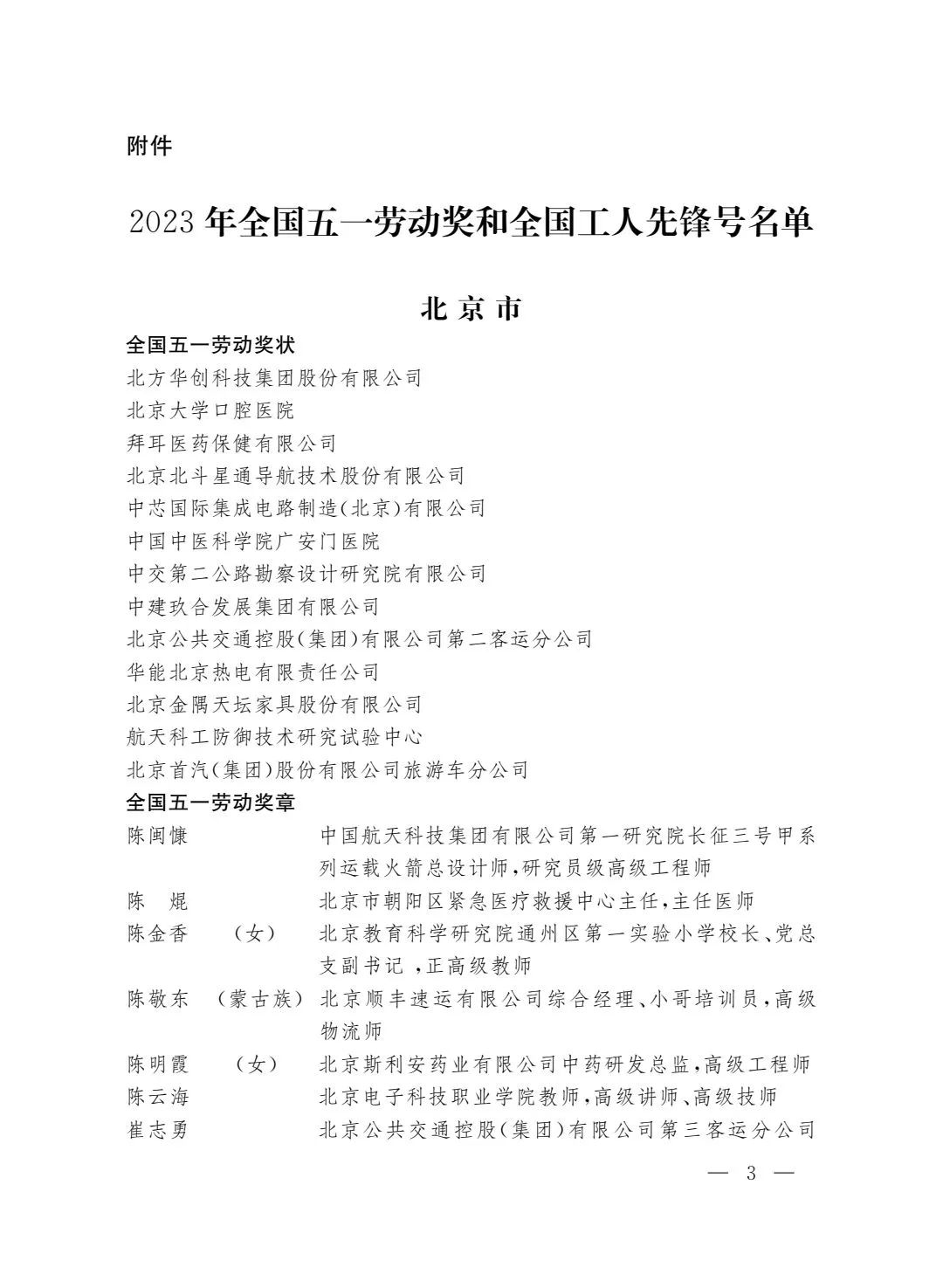 2023年庆祝“五一”国际劳动节暨全国五一劳动奖和全国工人先锋号表彰大会4月27日在北京人民大会堂隆重举行,207个集体和1035名个人分获全国五一劳动奖状、奖章,1044个集体获全国工人先锋号。