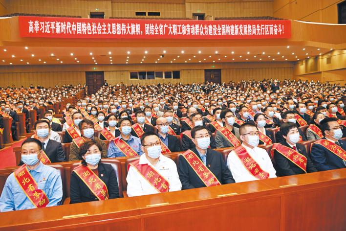4月27日,2023年湖北省庆祝“五一”国际劳动节暨湖北省劳动模范和先进工作者表彰大会在武汉隆重举行。(湖北日报全媒记者 李溪 摄)
