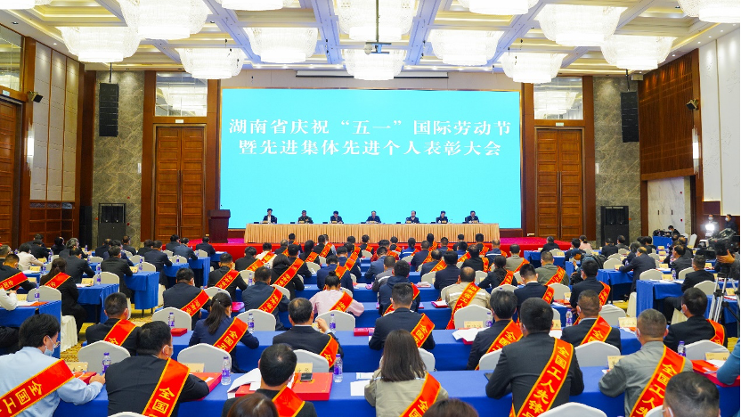 4月28日,湖南省庆祝“五一”国际劳动节暨先进集体先进个人表彰大会在长沙举行。