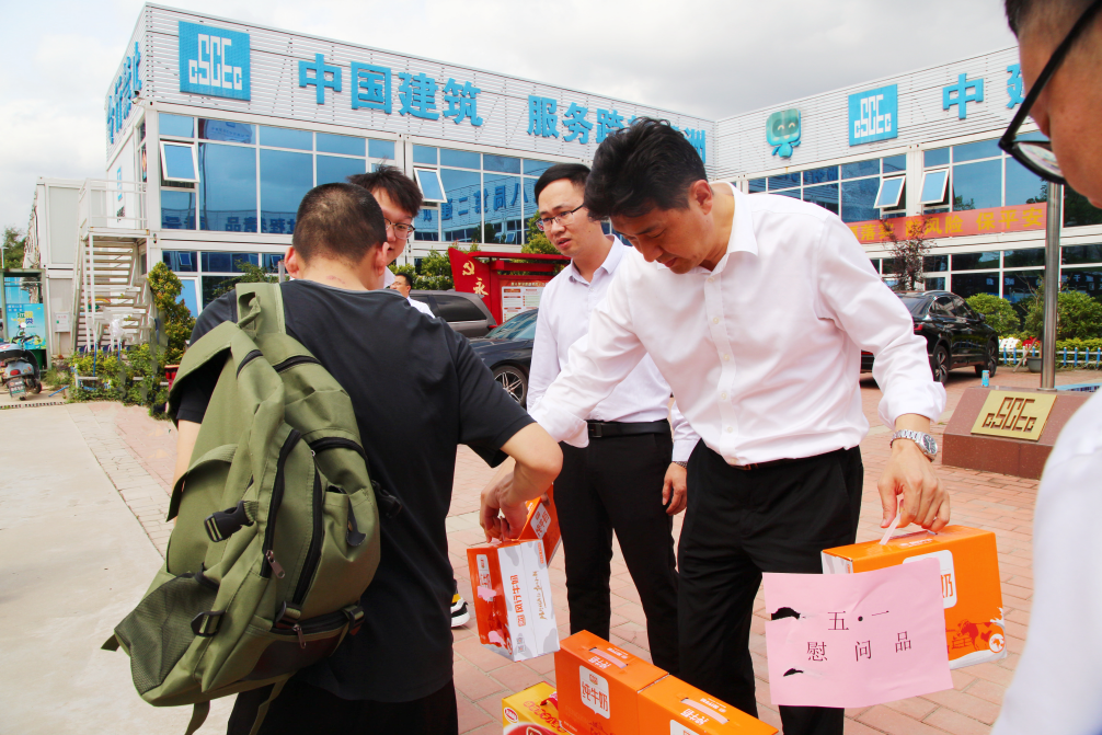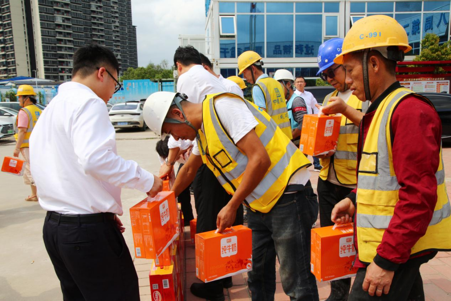 活动中,华南投资公司综合开发分公司党总支书记赵小刚还给工友们发放了牛奶、八宝粥等慰问物资,对他们的辛勤付出表达感谢。