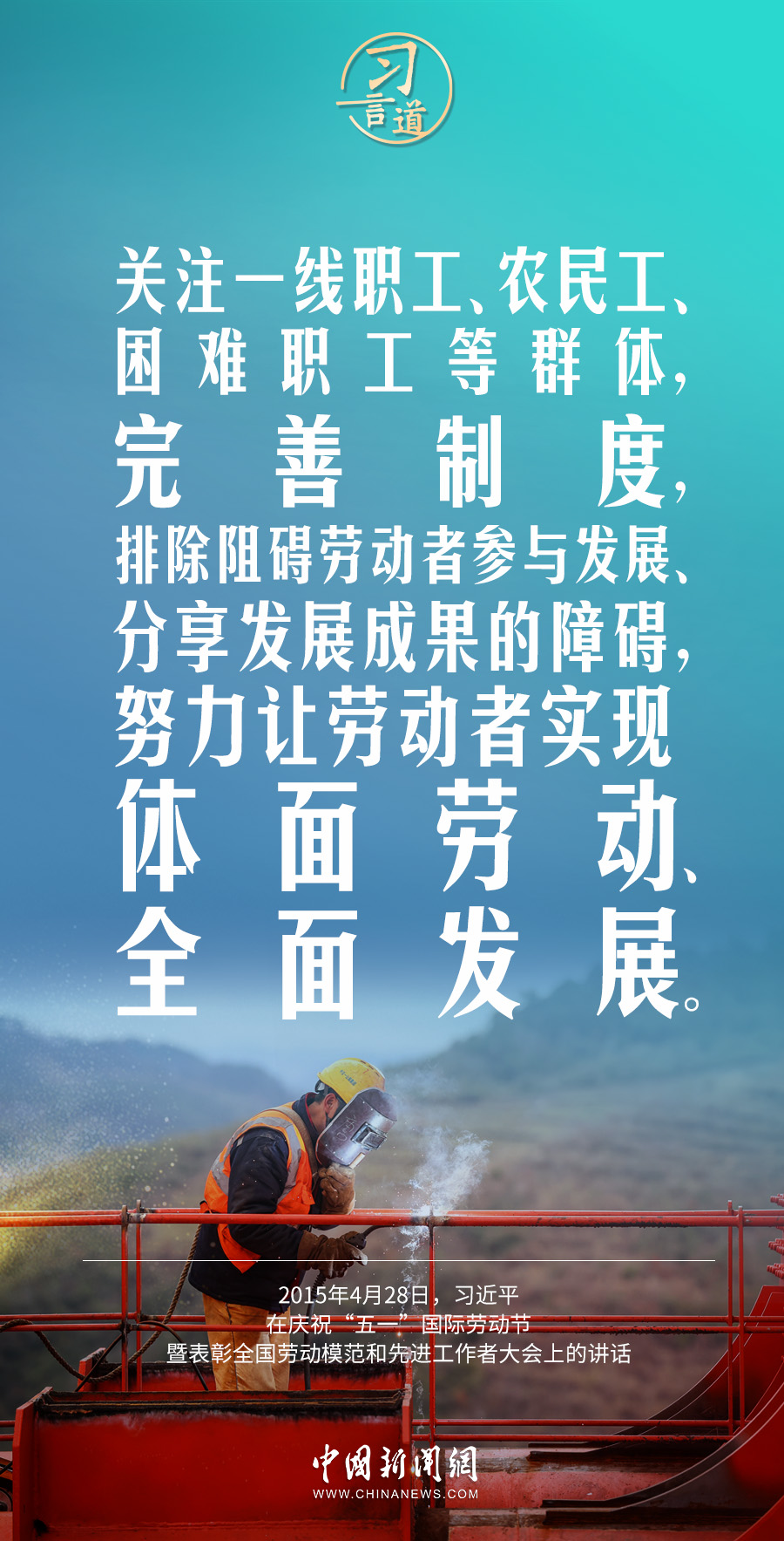 原标题:习言道|努力让劳动者实现体面劳动、全面发展