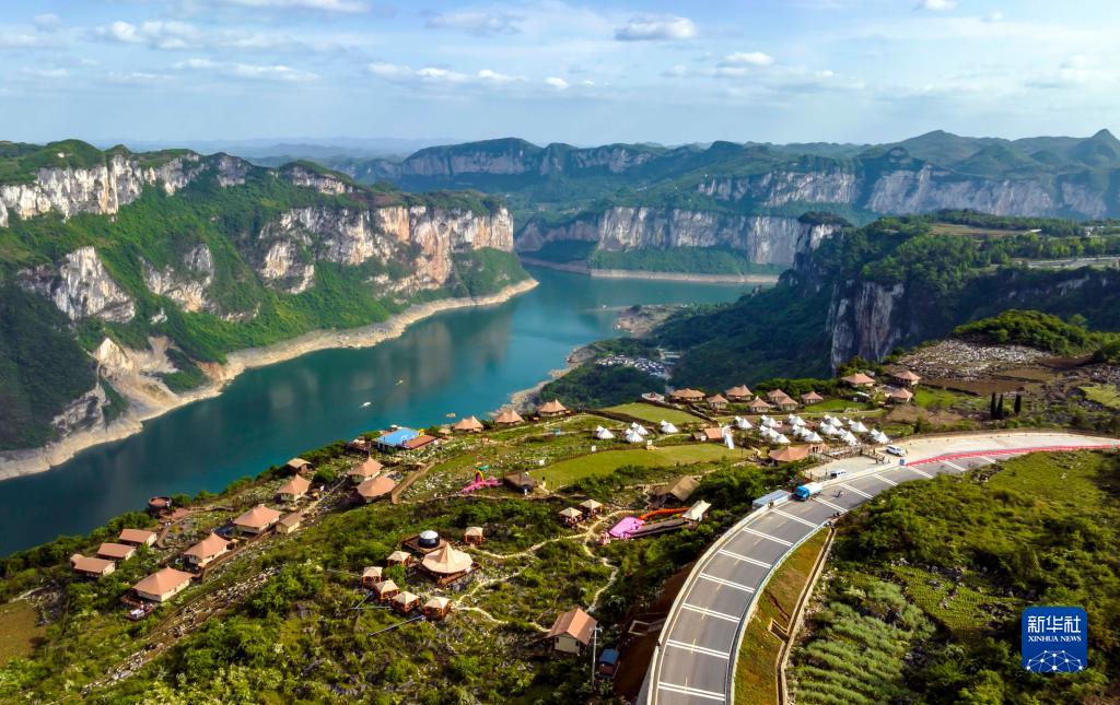 4月29日拍摄的贵州省黔西市化屋露营基地(无人机照片)。