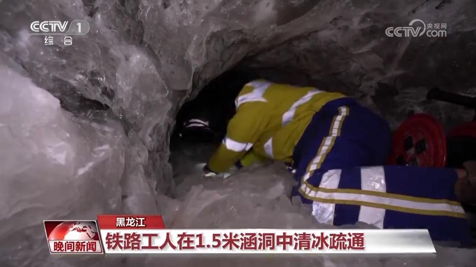 【黑龙江】铁路工人在1.5米涵洞中清冰疏通