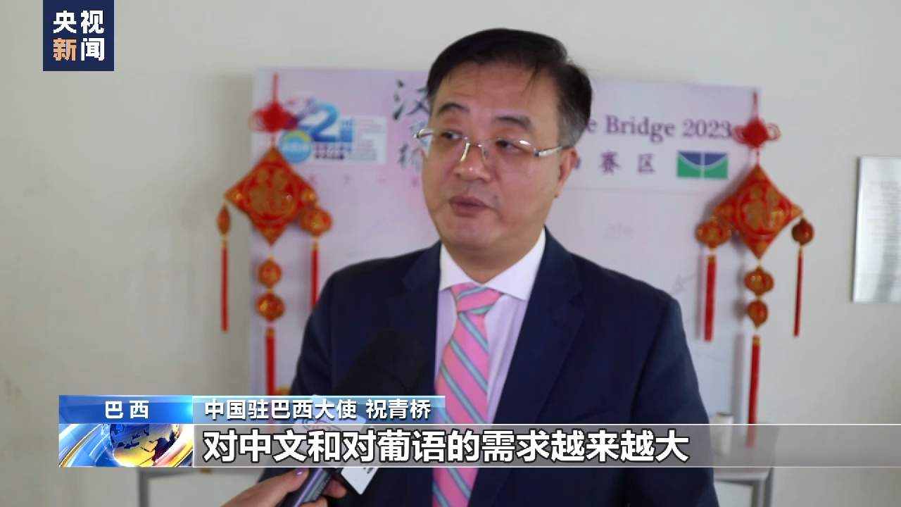 中国驻巴西大使 祝青桥:随着中国跟巴西各领域合作的不断扩大深化,对语言的需求、对中文和对葡语的需求越来越大。每年在巴西孔子学院登记注册的学员有1.2万人,巴西还有更多的地方、更多的人希望来参加汉语的学习。