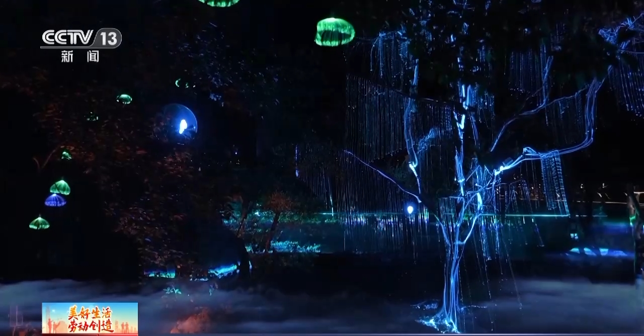 总台记者 冯小洁:在新昌十九峰,白天可以打卡影视取景地,傍晚夜幕降临仿佛到了梦幻之境,游客不仅是普通观众,还可以沉浸式参与互动、参与剧情。