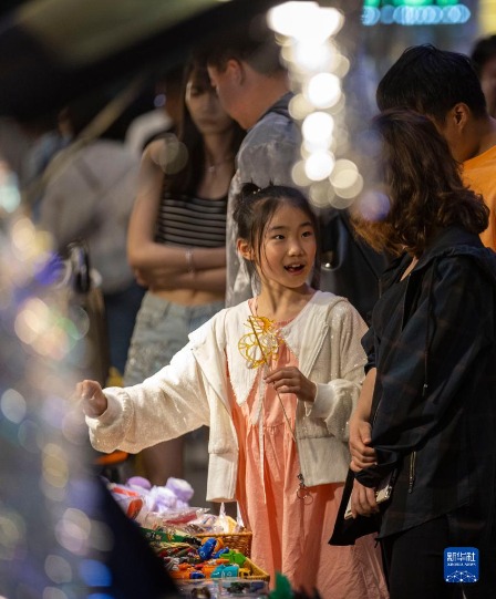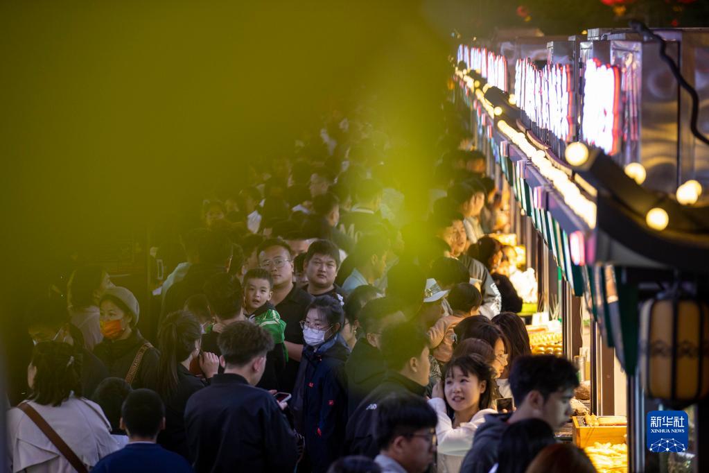 5月1日,游客在宁夏银川市西夏区怀远观光夜市游览。