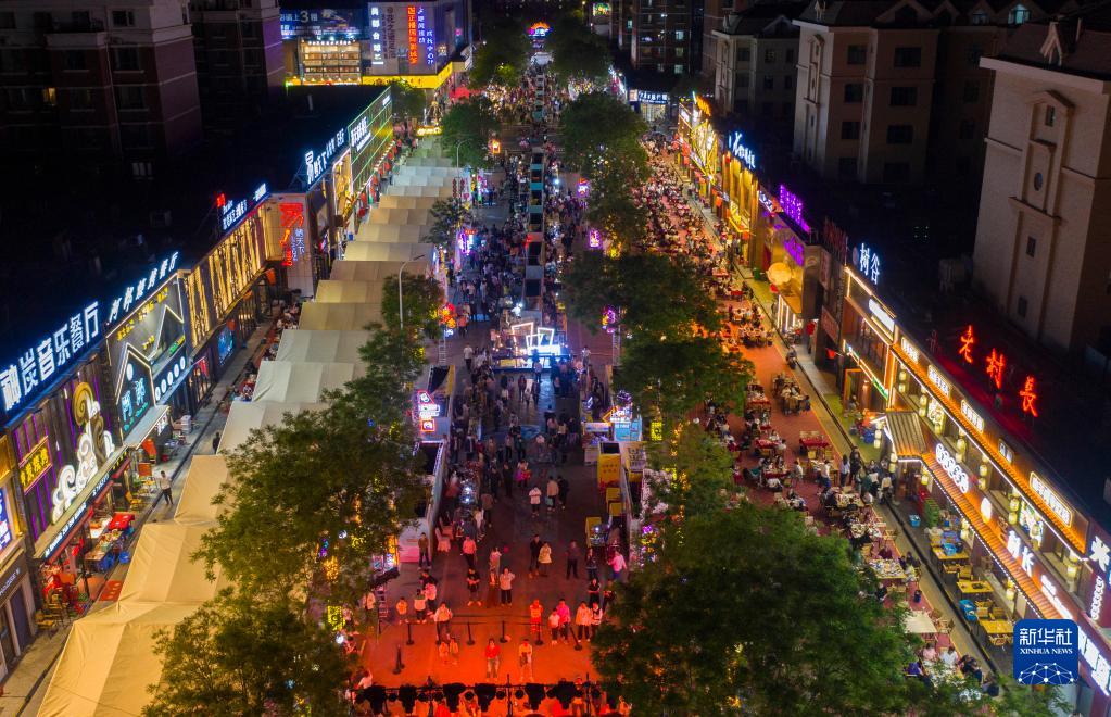 5月2日拍摄的宁夏银川市兴庆区敬德夜市(无人机照片)。