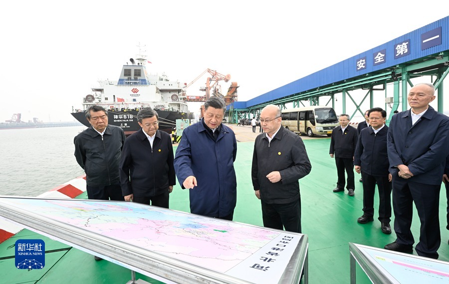 5月11日至12日,中共中央总书记、国家主席、中央军委主席习近平在河北考察,并主持召开深入推进京津冀协同发展座谈会。这是11日下午,习近平在沧州市黄骅港煤炭港区码头考察。新华社记者 李学仁 摄