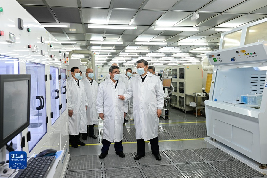 5月11日至12日,中共中央总书记、国家主席、中央军委主席习近平在河北考察,并主持召开深入推进京津冀协同发展座谈会。这是12日上午,习近平在位于石家庄市的中国电科产业基础研究院考察。新华社记者 燕雁 摄