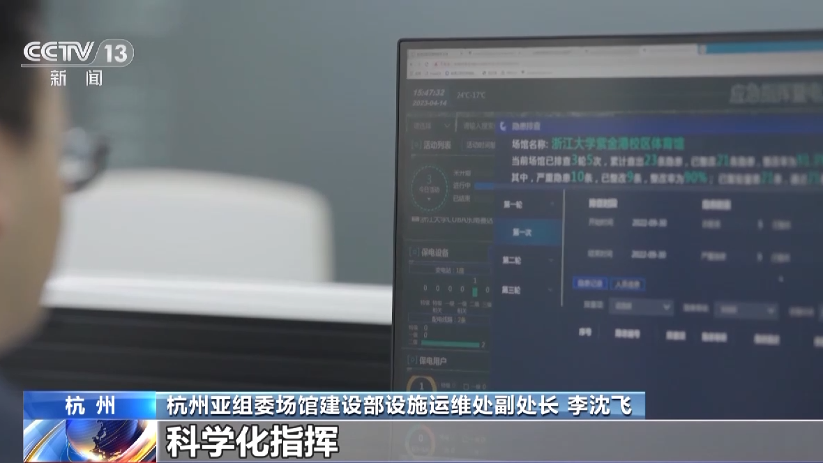 杭州亚组委场馆建设部设施运维处副处长 李沈飞:杭州亚运会保电工作面临场馆分布分散、参与人员设施众多、保电时间跨度大等考验。电力运行保障指挥平台的上线,通过数字化监控、科学化指挥、智能化预演等手段,推动了亚运场馆设施运维更加智能、高效。