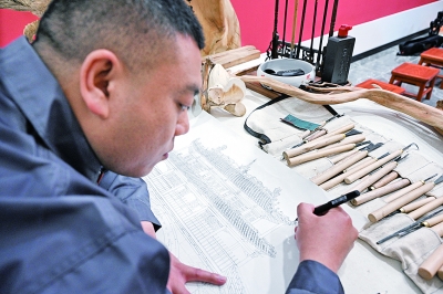 许红阳观察浮雕形态,他在薄浮雕技艺上精益求精