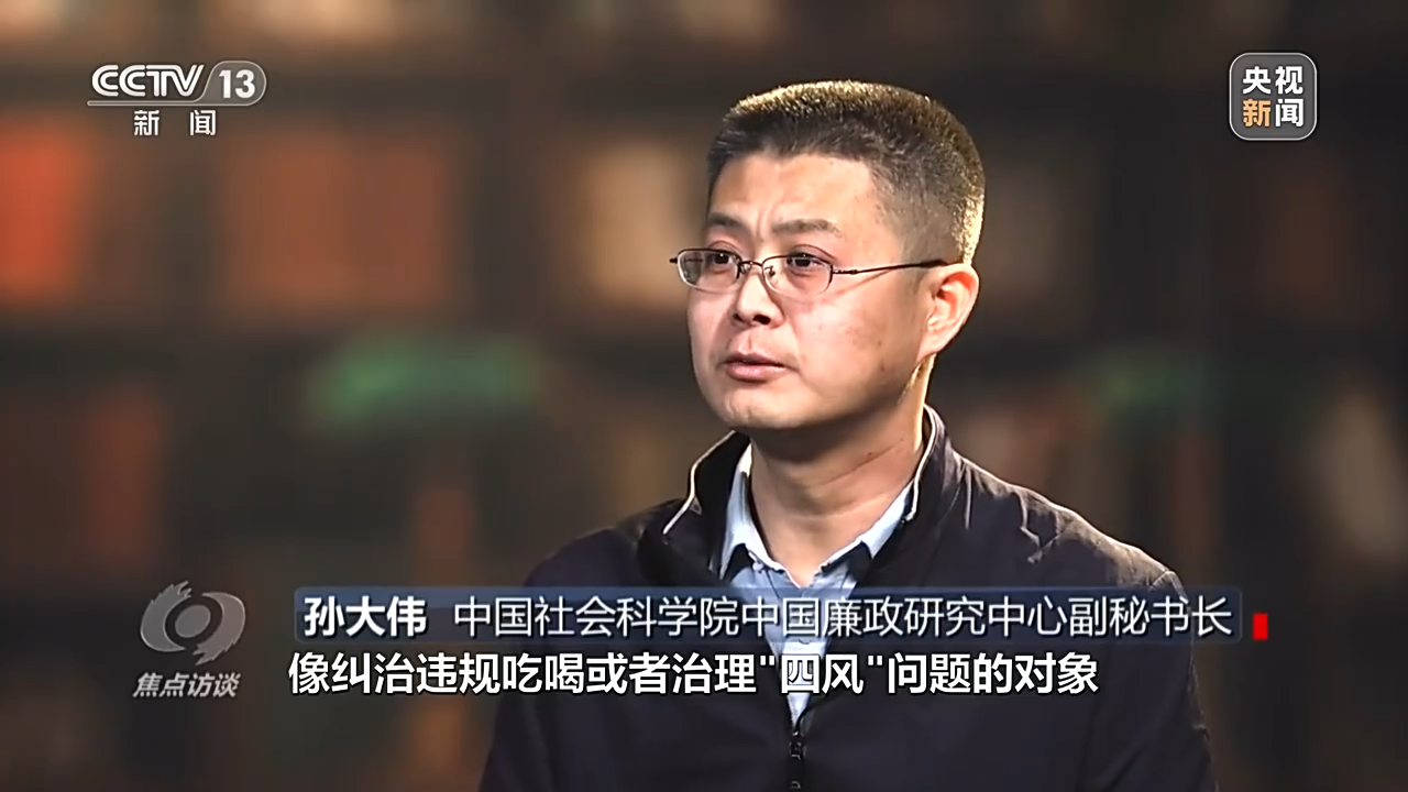 中国社会科学院中国廉政研究中心副秘书长 孙大伟:我们作为党员干部,特别是重点领域,关键岗位上的执行重要公务的党员干部或者公职人员,一定要绷紧严于律己这根弦,特别是在吃喝、接受宴请、接受礼品礼金各个方面都要绷紧这根弦。