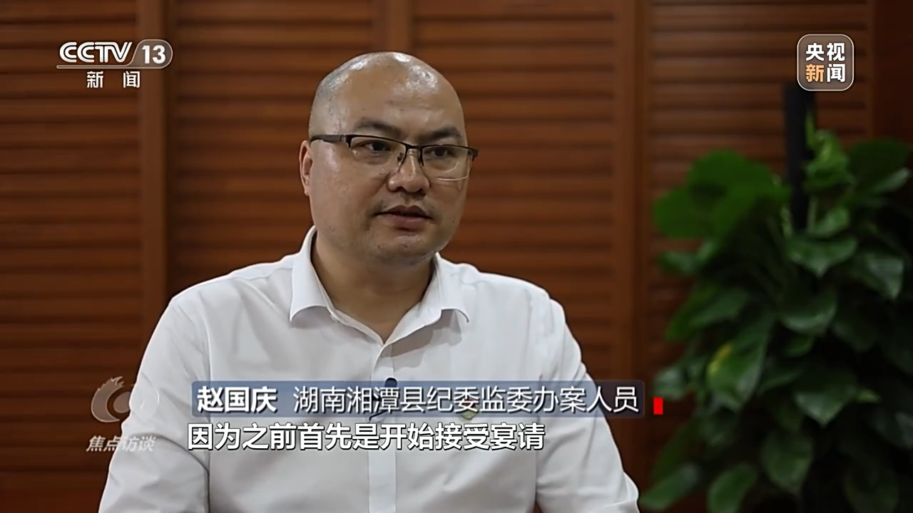 湖南省湘潭县纪委监委办案人员 赵国庆:慢慢地由小变大,因为之前首先是开始接受宴请,然后慢慢地放松警惕接受礼品,接受所谓的礼金,然后再是大额的现金,一步一步就滑向深渊了。