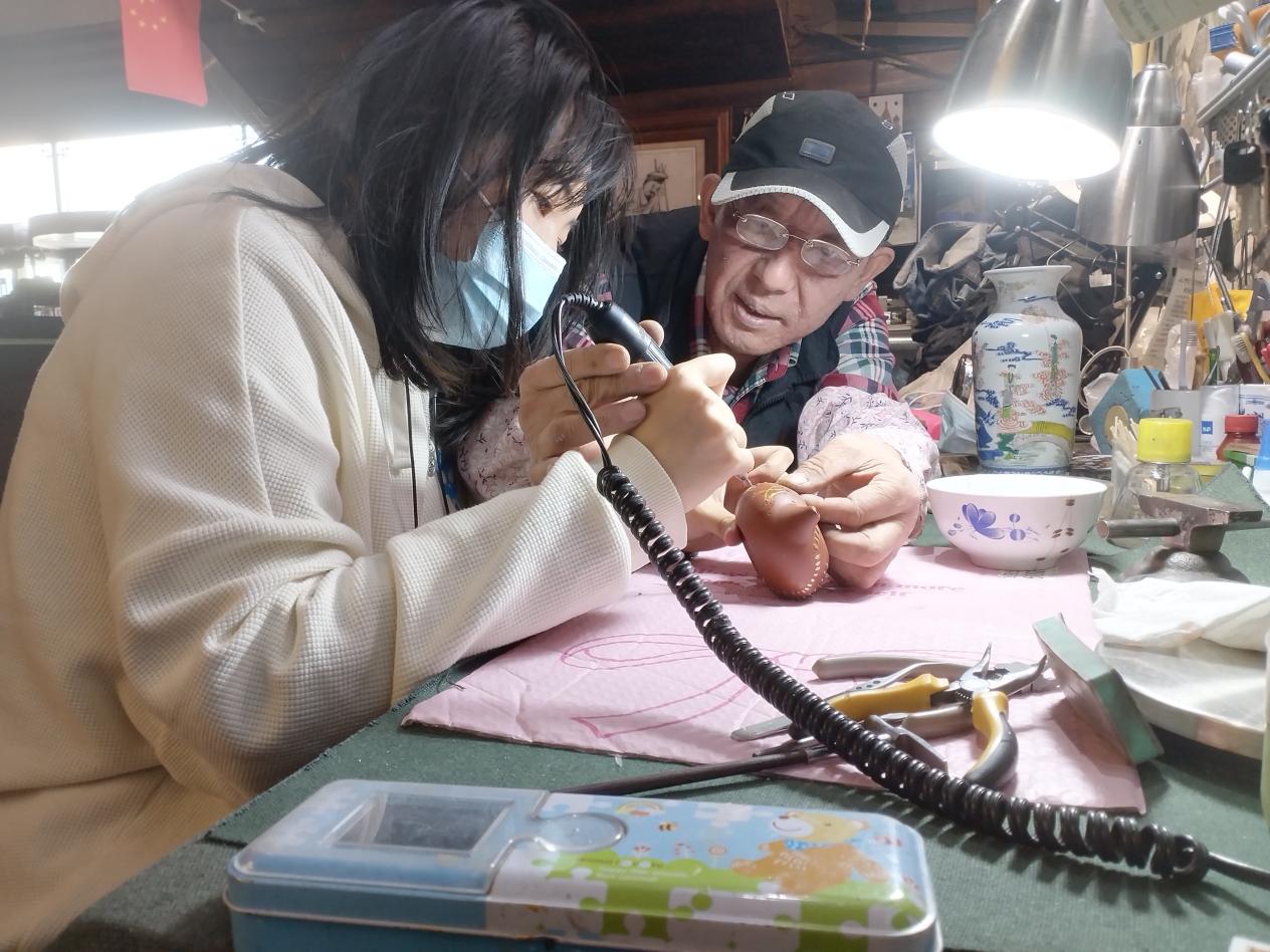 张清云在教大学生锔瓷