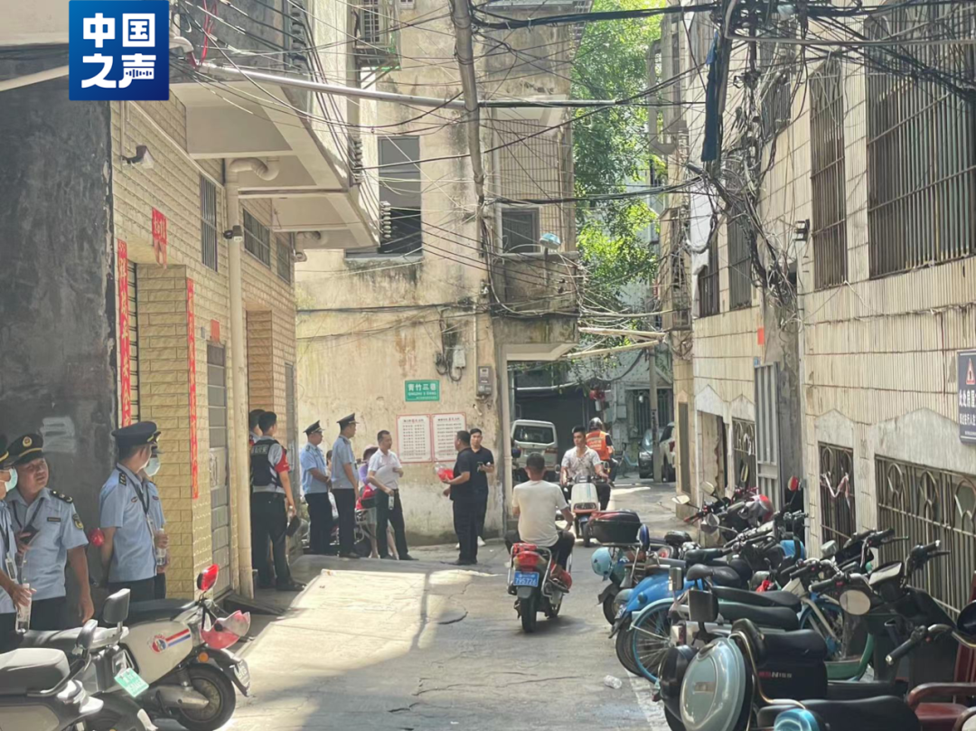 中国之声报道播出当天上午,琼山区多个职能部门来到这栋楼下,安置仍居住在内的居民。