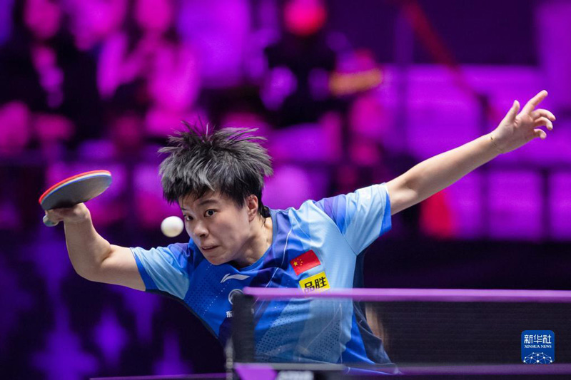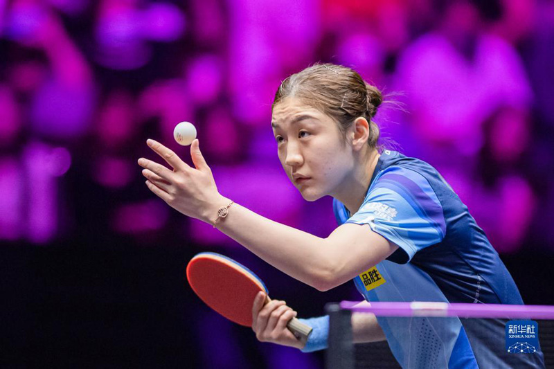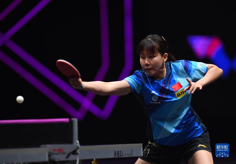 2023年4月11日,陈幸同在比赛中回球。当日,在河南新乡举行的世界乒乓球职业大联盟(WTT)新乡冠军赛女单首轮比赛中,中国选手陈幸同以3比0战胜日本选手木原美悠,晋级十六强。新华社记者 郝源摄