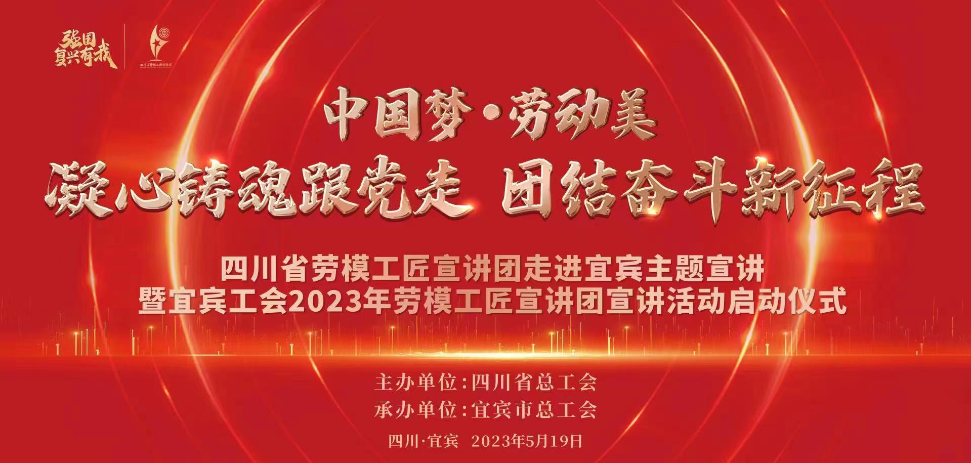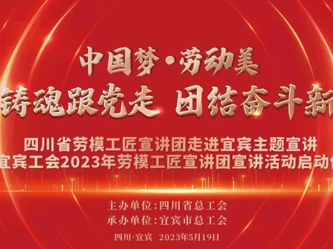 直播回顾丨“中国梦·劳动美——凝心铸魂跟党走 团结奋斗新征程”四川省劳模工匠宣讲团走进宜宾主题宣讲暨宜宾工会2023年劳模工匠宣讲团宣讲活动启动仪式(一) 在今年“五一”国际劳动节到来之际,习近平总书记向全国广大劳动群众致以节日的祝贺和诚挚的慰问,充分彰显了人民至上的执政理念和真挚深厚的为民情怀。为深入学习宣传贯彻习近平新时代中国特色社会主义思想和党的二十大精神,学习贯彻习近平总书记重要指示精神,大力弘扬劳模精神、劳动精神、工匠精神。由四川省总工会主办、宜宾市总工会承办的“中国梦·劳动美——凝心铸魂跟党走 团结奋斗新征程”四川省劳模工匠宣讲团走进宜宾主题宣讲暨宜宾工会2023年劳模工匠宣讲团宣讲活动启动仪式,于5月19日上午9:30举行。中工网首页、微博、视频号同步直播!