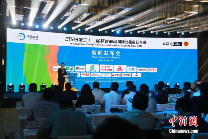 中新网北京5月24日电 5月24日,2023第二十二届环青海湖国际公路自行车赛新闻发布会在北京举行。据介绍,本届赛事于2023年7月8日在西宁市举办开幕式,7月9日至16日比赛,16日晚在海西州乌兰县茶卡镇举行闭幕式。