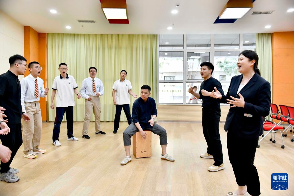 5月23日,在省济南市历城二中闻韶艺术馆,老师和同学们在练习小合唱。