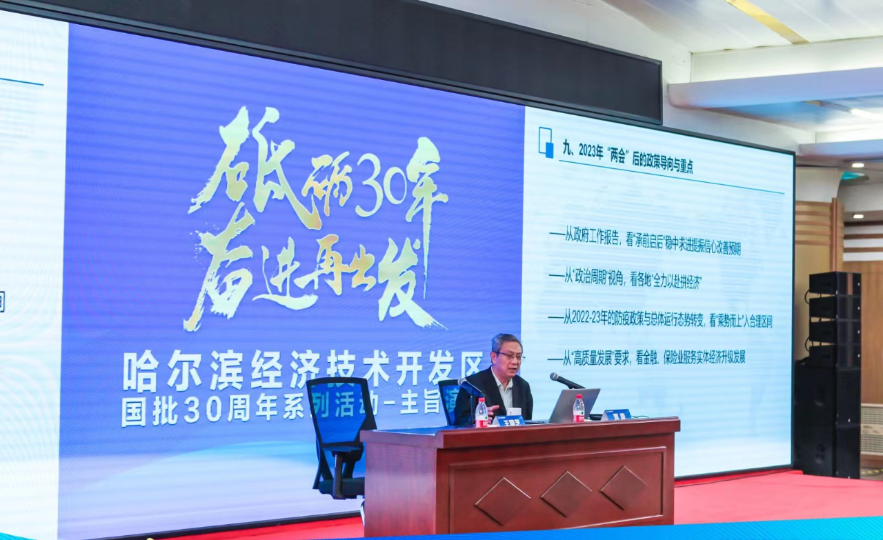 为了进一步加强干部队伍建设,提升服务企业质效,持续推动“政商沙龙”活动走深走实。5月21日,哈尔滨经济技术开发区举办国批三十周年主旨演讲活动。活动邀请华夏新供给经济学研究院创始院长、中国财政科学研究院研究员、博导贾康教授,为经开区干部及企业代表进行了以“推动开发区经济转型升级高质量发展的思考”的主题的专题演讲。