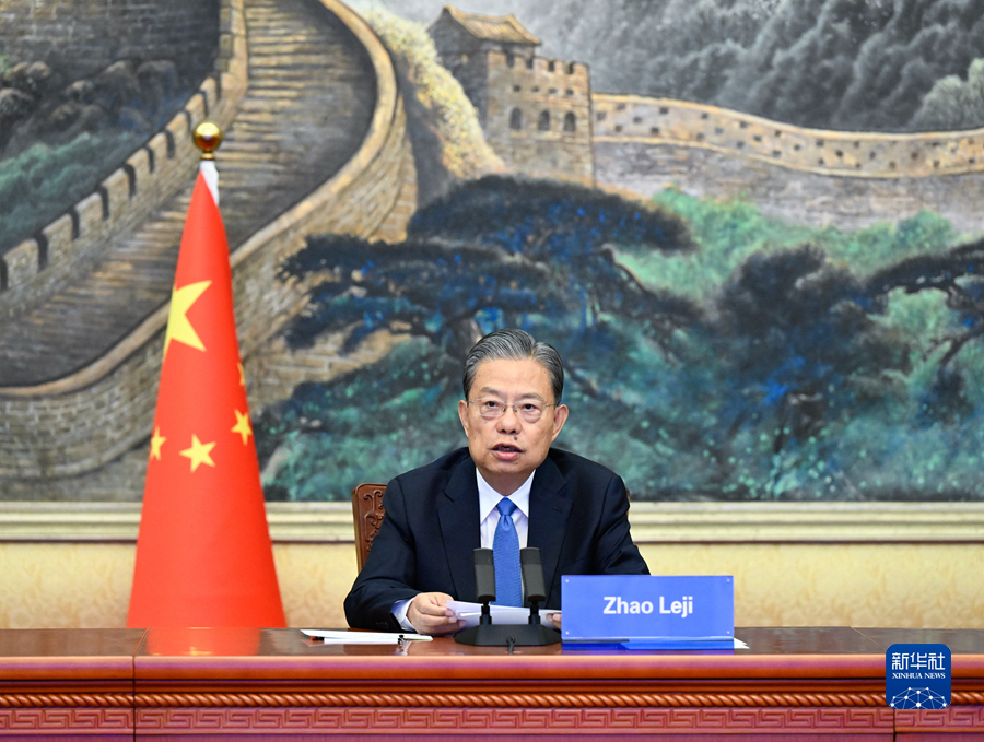 新华社北京5月26日电 全国人大常委会委员长赵乐际26日下午在人民大会堂以视频方式同冰岛议长奥尔曼松举行会谈。