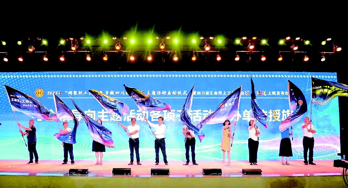 活动现场展示了2022年“四川好网民”主题活动优秀作品。地方工会干部、企业工会干部和职工文艺骨干代表分别就好网民活动组织、参与、创作过程中积累的经验及做法,进行了分享交流,与会领导对2023年好网民主题活动子项目承办单位授旗,并举行“川工之家”APP凉山频道的上线发布会。