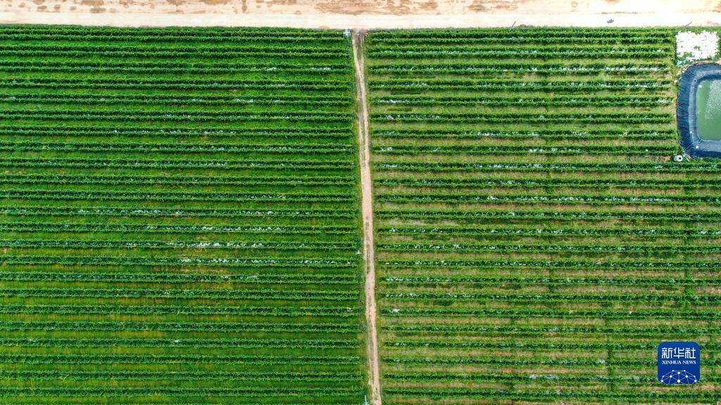 这是广西钦州市钦南区犀牛脚镇的一处黄金百香果园(5月26日摄,无人机照片)。