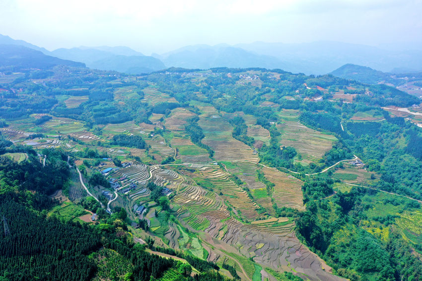 航拍筠连县镇舟镇的“高坎梯田”。筠连县融媒体中心供图