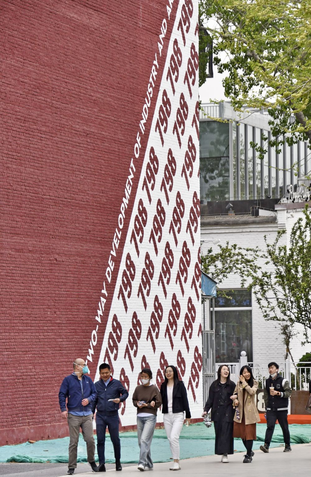 游人在老旧厂区改造的北京朗园文创园区参观(2023年4月12日摄)。新华社记者 李欣 摄